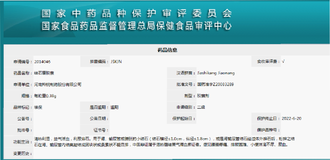北京远博服务的结石康胶囊项目通过中药保护续保的审评