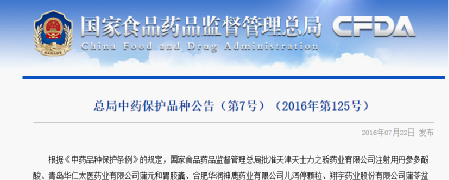 下图为国家食药监总局关于蒲苓盆炎康颗粒等9个品种获得中药品种保护的公告。
